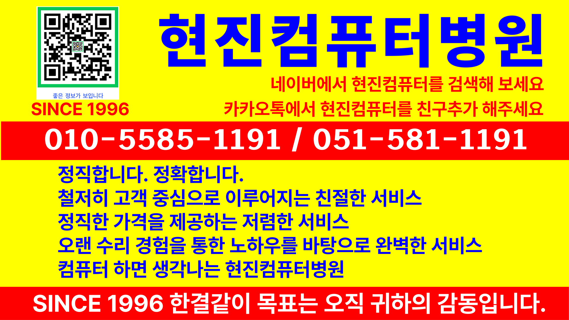 SINCE 1996 컴퓨터수리, 노트북수리 한결같이 목표는 오직 귀하의 감동입니다.